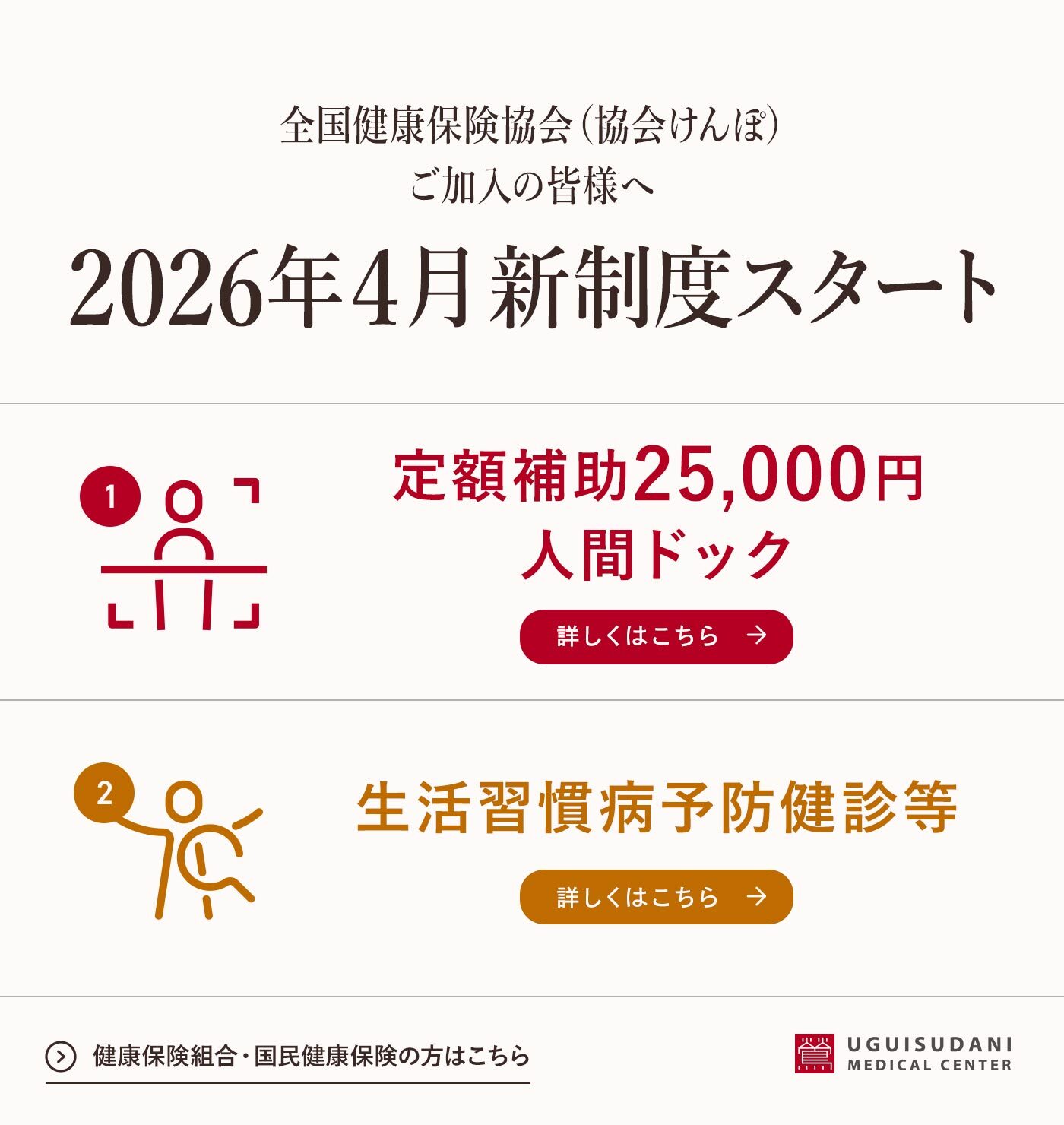 協会けんぽに加え、健康保険組合(一部の健康保険組合を除く)の加入者さま向けに、健康診断、人間ドックのご予約が可能です。