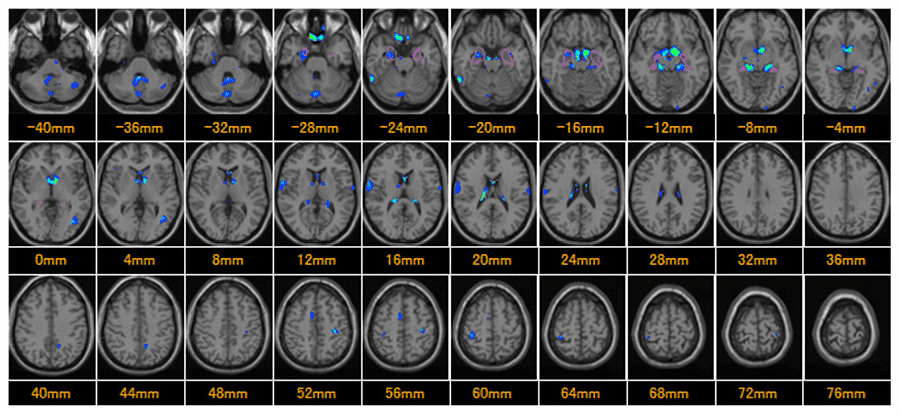 VSRAD(ブイエスラド)とは、脳のMRI画像を利用して記憶を司る「海馬」の萎縮度を測定し、早期アルツハイマー型認知症の発症リスクを判定する検査です。正常脳との比較で評価し、萎縮の強さを数字で表します。VSRADからアルツハイマー型認知症の可能性があるかがわかりますが、それ以外の原因で脳が萎縮してしまう病気もあるため、MRI検査とVSRADの画像検査だけでは判断できません。