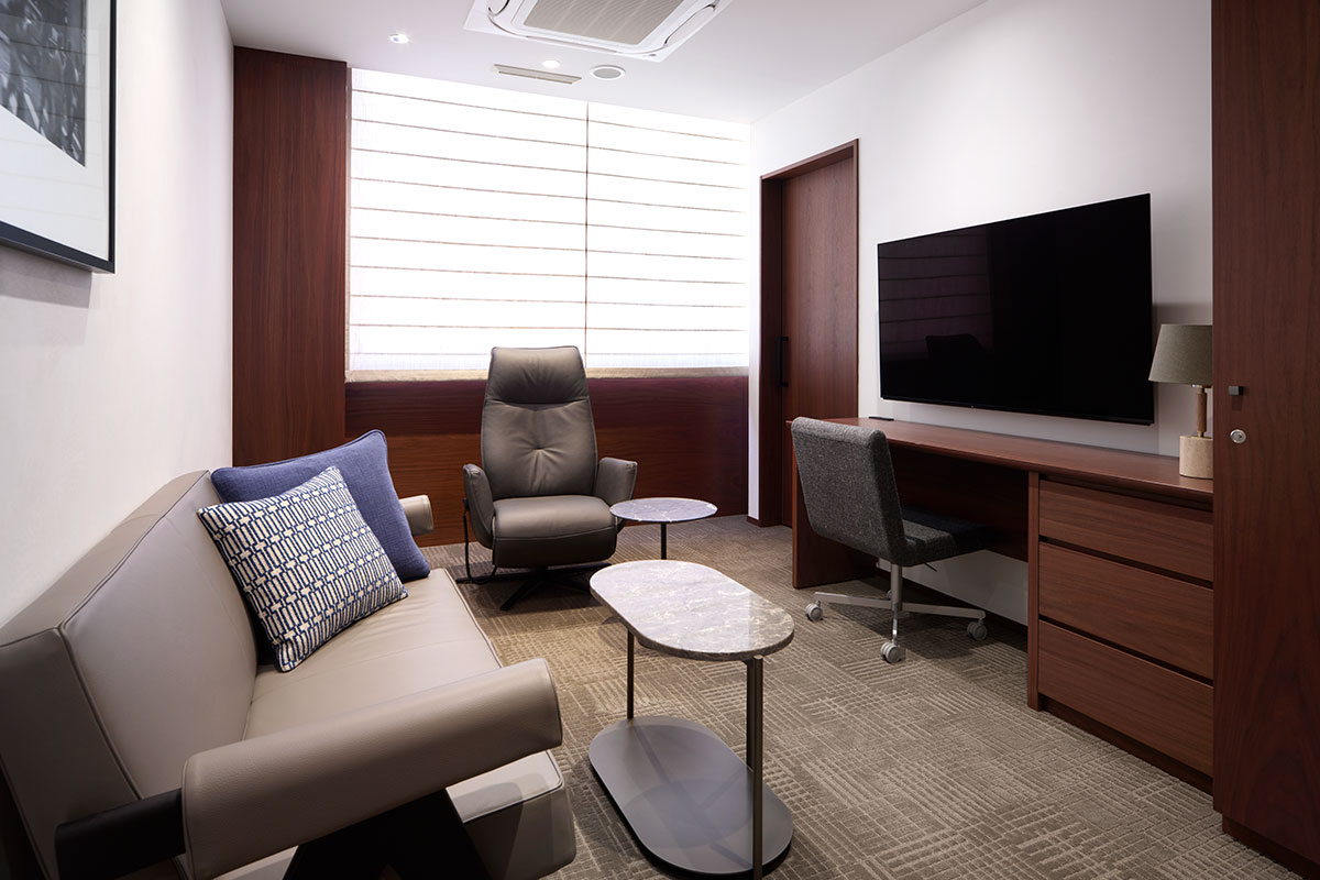 よりプライバシーを大切にされる方のための特別室です。専用の洗面所と検査室を設えたスイートルーム形式で医師の診察や結果説明、検査のほとんどを行うためゆったりとお過ごしいただけます。専任のコンシェルジュが対応します。
